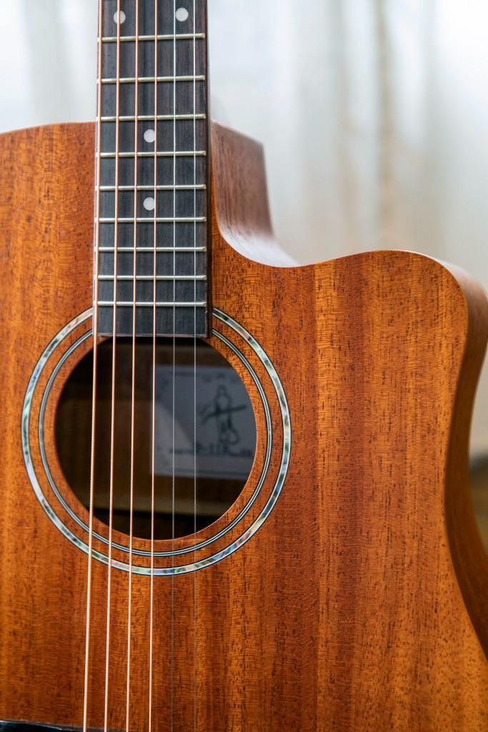 D-11B琴身是使用全桃花心木材質,整體音色表現較為柔和,溫暖厚實,中頻的動態良好,有著溫暖人心的聲音,41吋桶身設計讓整體共鳴更好,音量更大,缺角設計讓彈奏高把位時能更輕鬆。