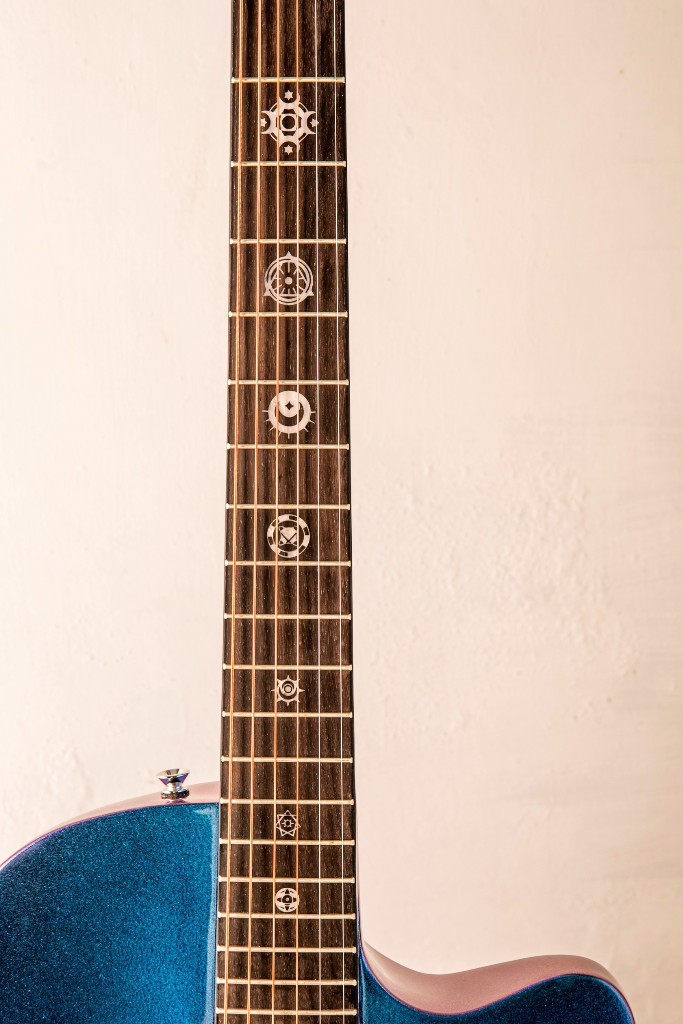 指板上的獨家設計鑲嵌圖案,代表宇宙中的不同文明。