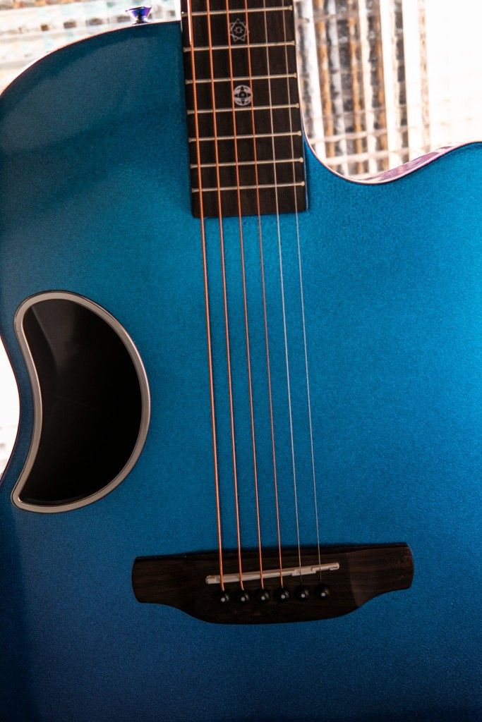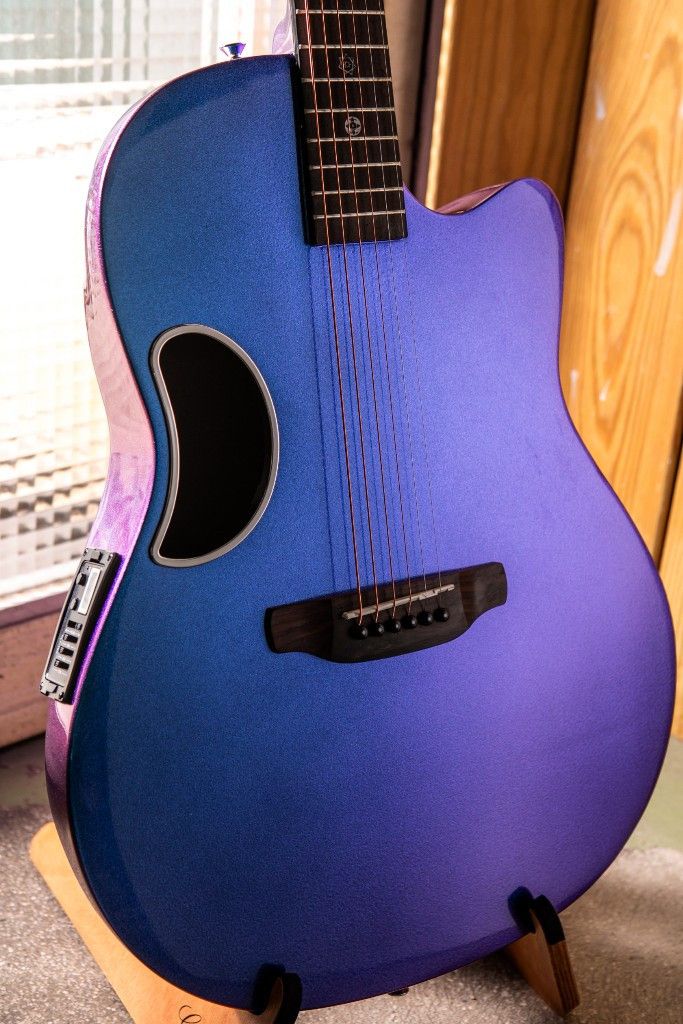 琴身是使用雲杉單板,側背板是玻璃纖維,採用薄圓背設計,抱起來的感覺很舒適接近小吉他,整體音色厚實顆粒感充足,有結實的中低頻,清晰有顆粒感的高頻。